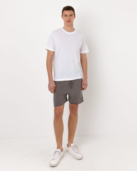 £299.00Le confort d’une coupe classiqueUn short coupe droite.Une matière douce, confortable et aérienne. Un pantalon aux finitions soignéesTaille élastiquée avec cordon platPoche dos plaquéeBadge sur le bas devantRayure contrastée sur le bas. Fabriqué en 100% coton.Tailles : XS, S, M, L, XL, XXL. Ref. TY66S25SH1H ### Thibaut mesure 1m90 et porte…